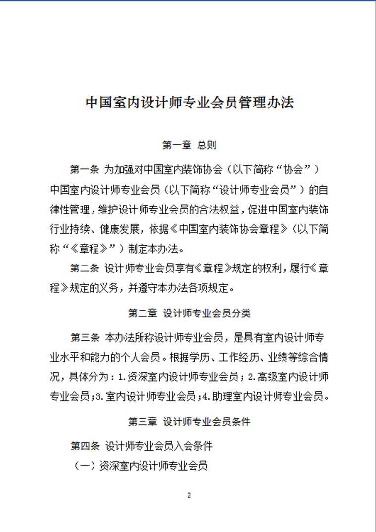 • 关于印发《中国室内设计师专业会员管理办法》的通知